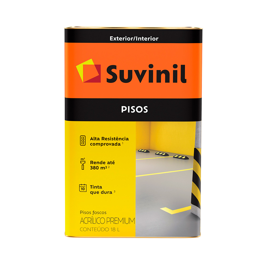 Pintura que recubre diferentes tipos de pisos. Garajes, aceras, canchas, áreas de ocio, escaleras, pisos de hormigón, pisos de cemento y pisos de cerámica mate. Para garantizar la máxima eficiencia, use con Suvinil Fondo Preparador.