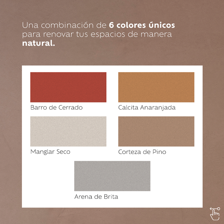 Suvinil Toque da Terra es un efecto decorativo para áreas interiores muy llamativo, por su consitución 100% mineral tiene estos colores tierra, elige sostenibilidad, pero sobre todo resaltar.